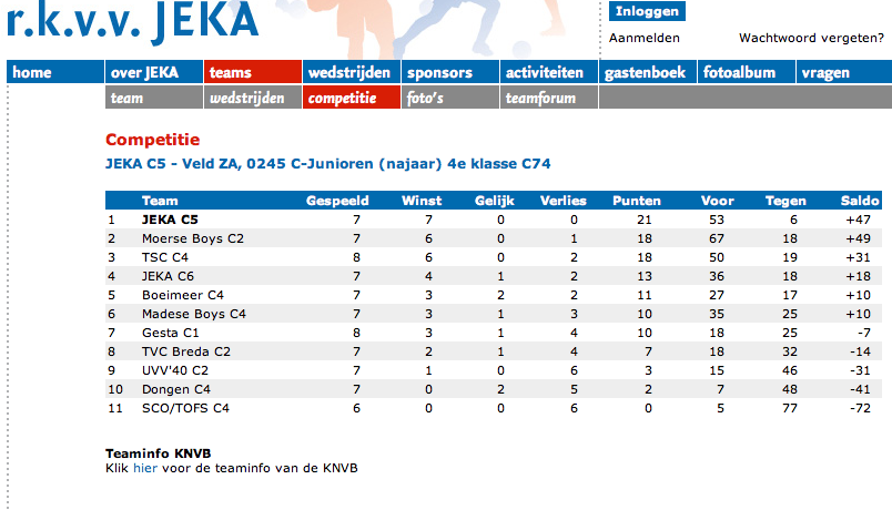De lang verwachte update..........Programma a.s. zaterdag: MADESE BOYS C4 - JEKA C5Aanvang 12:30uur, d.w.z. om 12uur aanwezig in Made ! Met het bekende excuus, druk, druk, druk is het al weer veel te lang geleden dat ik iets aan onze website gedaan heb. Het is echt geen gebrek aan enthousiasme maar echt een gebrek aan tijd. Belangrijk in deze update: 1: Teamuitje